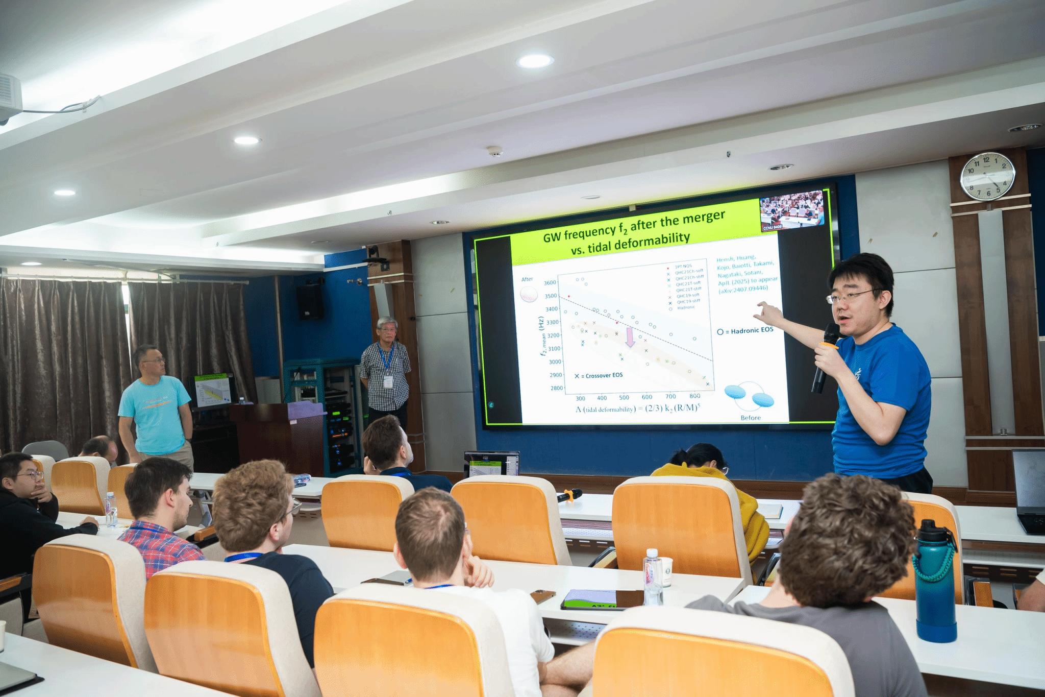 工作周期间来自清华大学、CERN、日本RIKEN研究所、美国杜克大学、范德堡大学、加州大学伯克利分校、德国海德堡大学、法兰克福高等研究院、波兰华沙理工大学、香港中文大学(深圳)、复旦大学、华中师范大学等单位的教授、年轻学者做了26场专题报告。其中,日本理化研究所(RIKEN)的Tetsuo Hatsuda教授还在9月2日在粒子物理研究所的首届IOPP Colloquium向全所师生做了题为《从夸克到中子星》的讲座,深入探讨了强相互作用物质在不同尺度下的行为特征,引发热烈讨论。