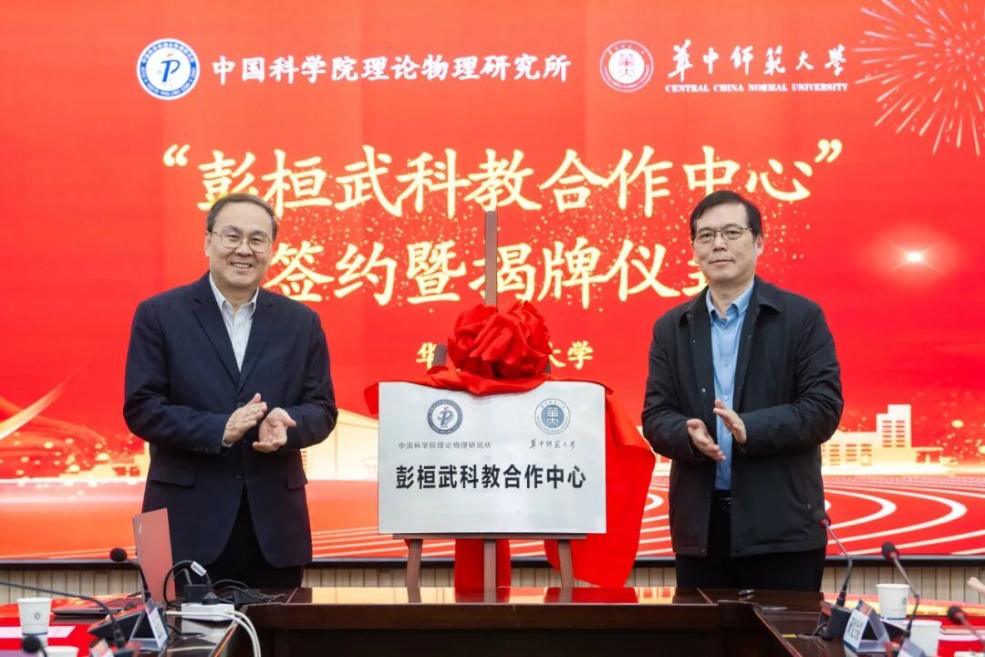 1月20日,我校与中国科学院理论物理研究所共建“彭桓武科教合作中心”签约暨揭牌仪式在行政楼一楼会议室举行。中国科学院理论物理研究所副所长苏刚、副所长周宇峰、研究员王颖丹、科研处副处长冯旻子,华中师范大学党委副书记陈迪明、副校长刘三女牙,人事处、科技处、本科生院、研究生院、实验室与设备管理处等职能部门负责人及物理学院党政班子、教师代表出席。仪式由物理学院院长秦广友主持。