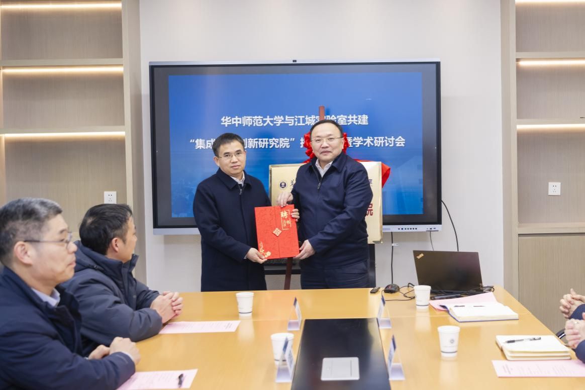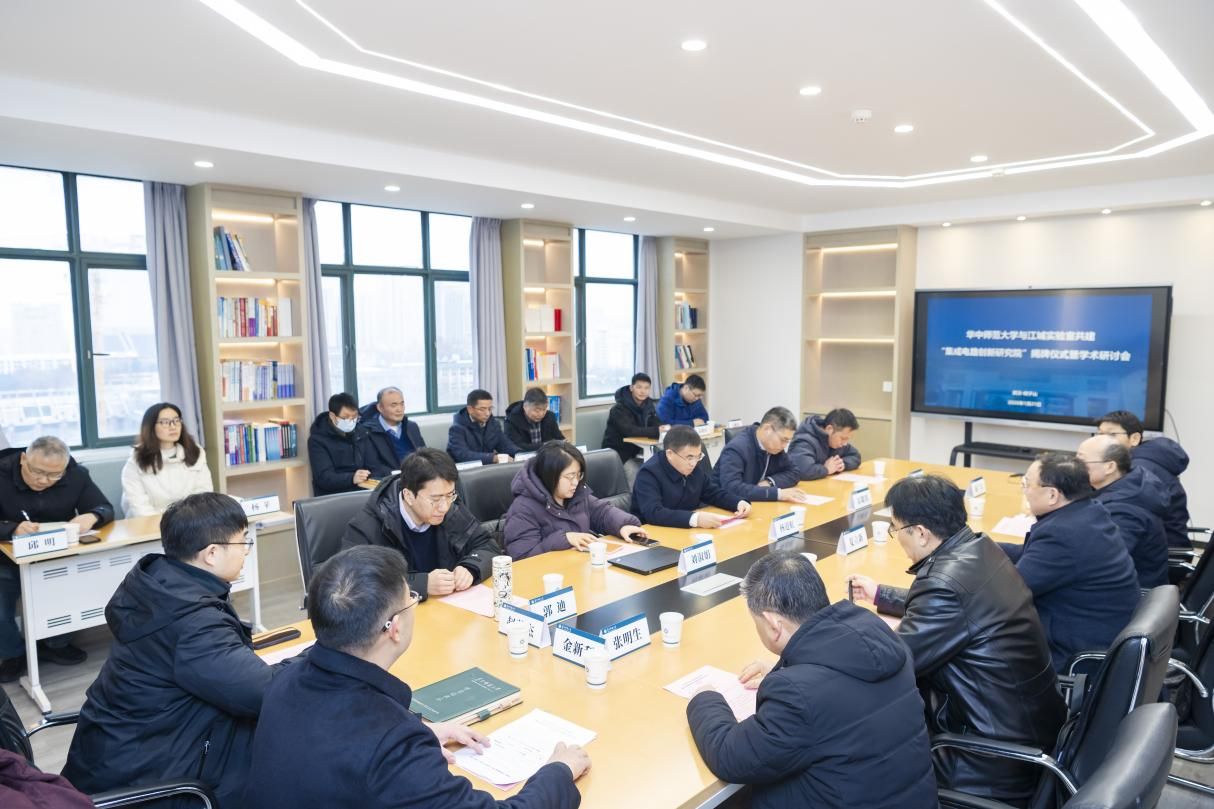 1月21日,华中师范大学与江城实验室联合共建的“集成电路创新研究院”揭牌仪式暨学术研讨会在物理科学与技术学院10楼会议室举行。江城实验室主任杨道虹、华中师范大学党委书记夏立新,华中科技大学、武汉大学集成电路学院负责人,我校科技处、专业学位管理中心、实验室与设备管理处等职能部门负责人,物理科学与技术学院班子成员及相关学科教师代表参会。物理学院党委书记金新利主持会议。