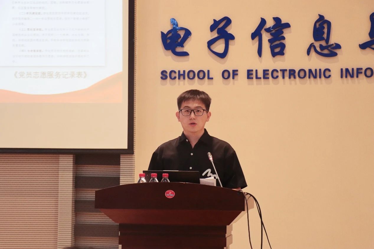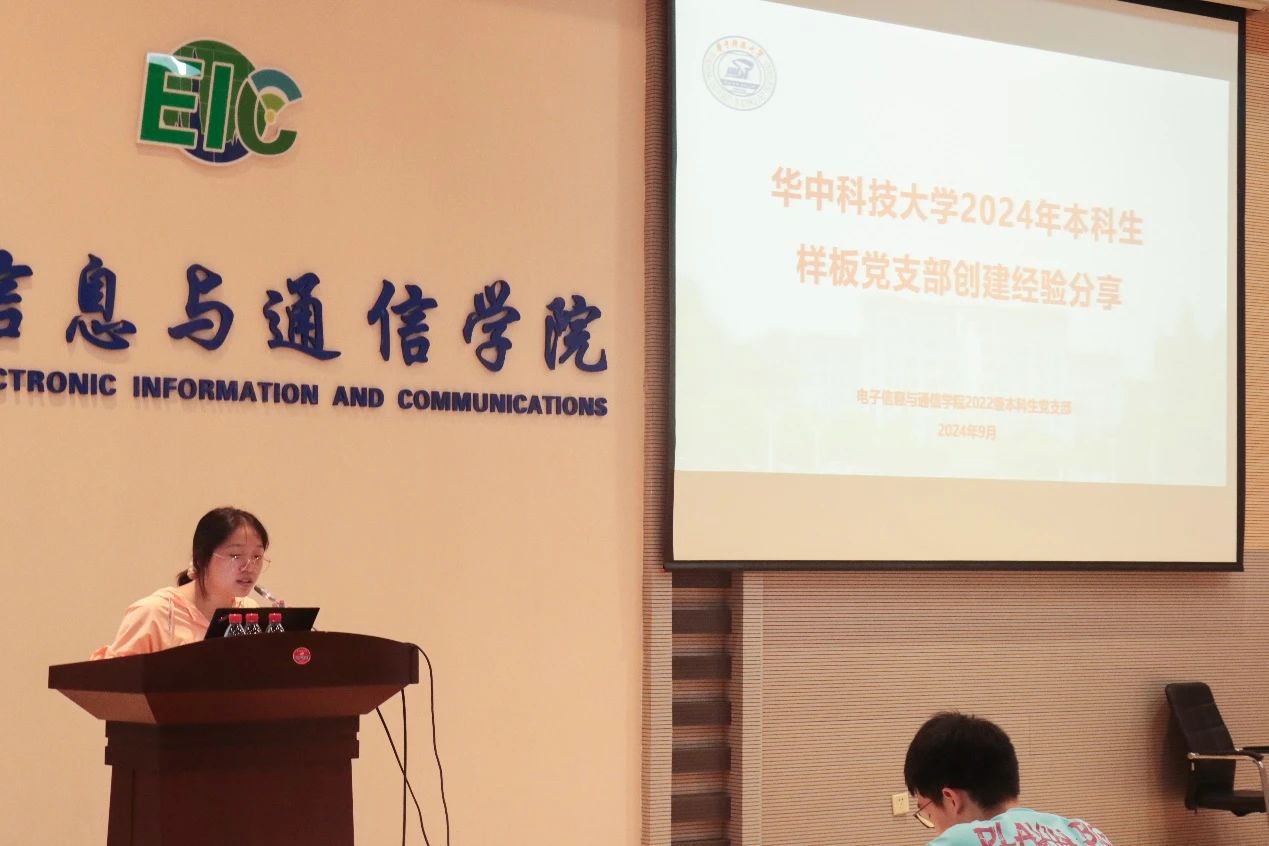 支部建设经验交流环节,华中科技大学电子信息与通信学院2022级本科生党支部书记邓萌做样板党支部创建经验分享。邓萌同志简要介绍了党支部的基本情况,阐述样板党支部的创建过程:一是榜样发挥领航作用,上好党员发展第一课;二是锤炼政治品格,加强制度建设;三是传承服务初心,走进学校社会积极参与志愿服务。