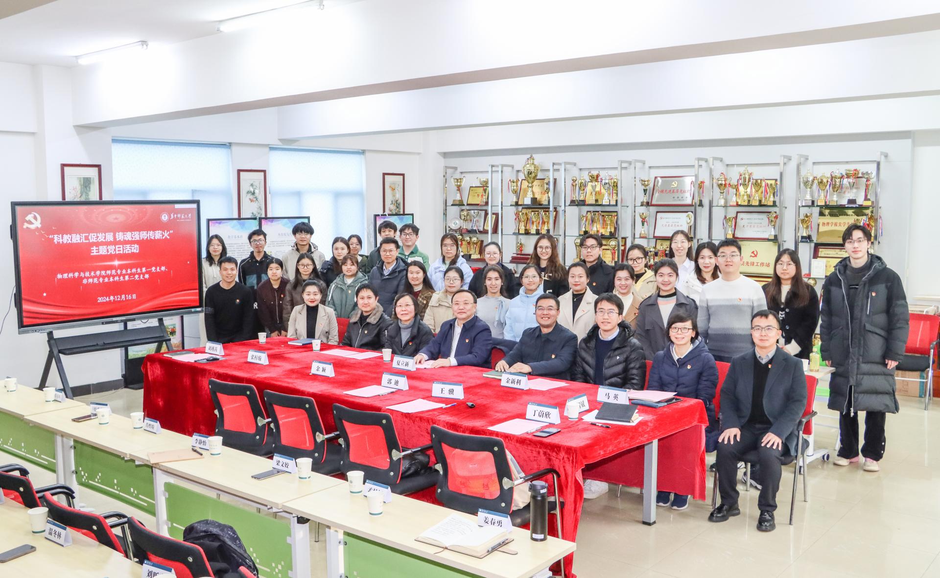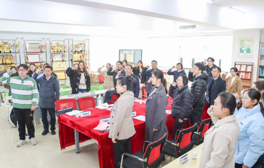 会上,全体党员佩戴党徽,重温入党誓词,共同观看支部党员制作的视频《科教融汇促发展 铸魂强师传薪火》。