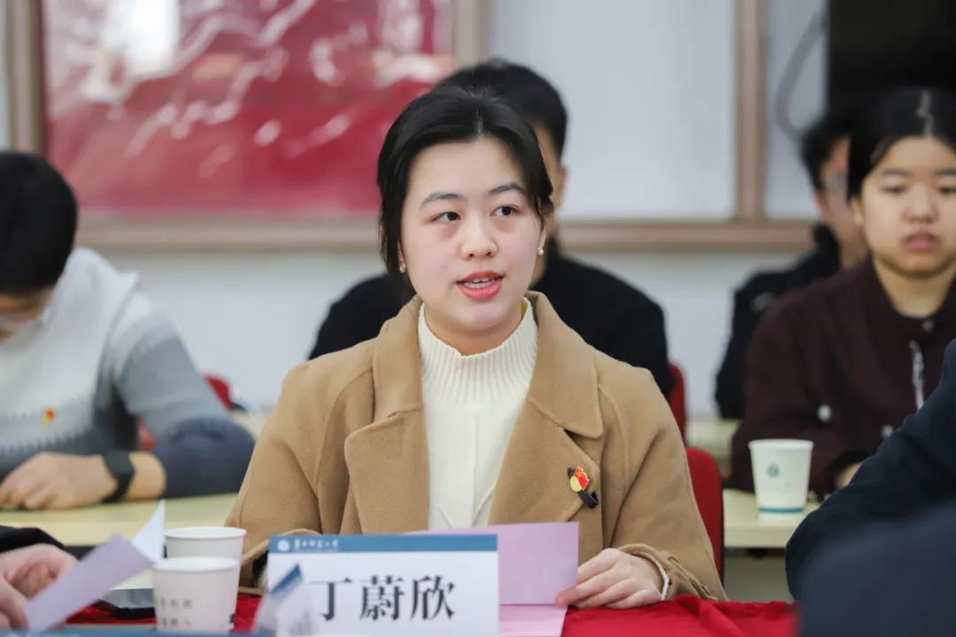 支部学生党员代表围绕教育实习与科创竞赛经历分享学习感悟。张梓璇结合教育实习经历,分享了在课堂教学中如何利用科研思维引导实验教学、利用创新实验提高教学效果的思考;丁蔚欣分享了她对教育教学方法的新认识和对“科教融汇”在中学实践的观察见闻;敬智斌介绍了自己参加“挑战杯”比赛的经历和感悟。
