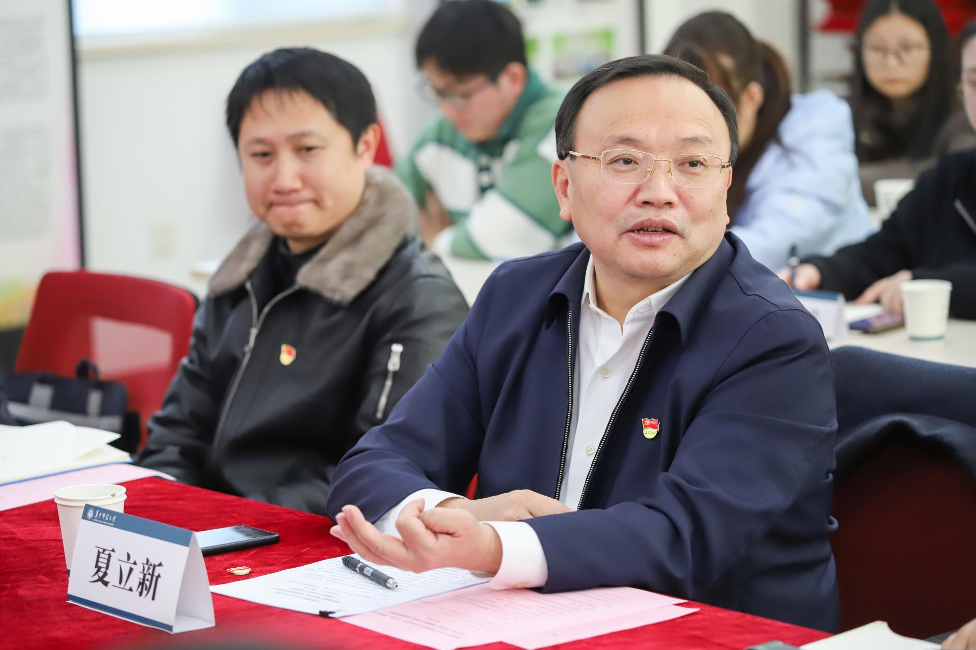 12月15日,校党委书记夏立新来到物理科学与技术学院党员活动室,参加所联系的师范专业本科生第一党支部活动。本次活动主题为“科教融汇促发展 铸魂强师传薪火”,由师范专业本科生第一党支部和非师范专业本科生第二党支部联合开展。学院党委书记金新利、党委副书记马英、副院长施梳苏,学院教师代表余颖、王骥、郭迪参加活动。活动由师范专业本科生第一支部书记刘瑾芮主持。