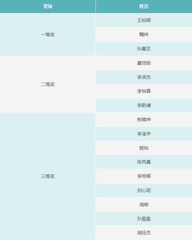 本次活动共评选出三等奖9名,二等奖4名,一等奖3名。具体获奖情况如下。
