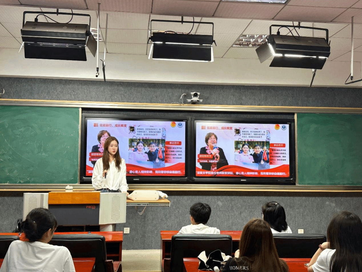 4月29日,学院2404班在9号楼9538会议室开展了“榜样引领・青年说”成长故事分享主题团课活动。特邀文学院汉语言文学(师范)专业2022级本科生吴优作经验分享,以自身成长经历为同学们带来一场启迪心灵的青春对话。