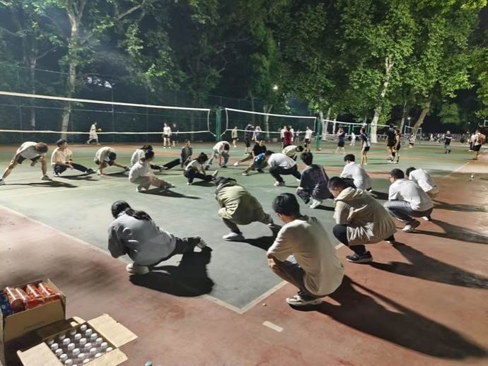 活动开始,杨轩语将班级成员平均分为4支队伍。心理委员李家豪带领全体同学热身训练,通过专业示范和细致指导,帮助大家充分活动身体,为比赛做好准备。