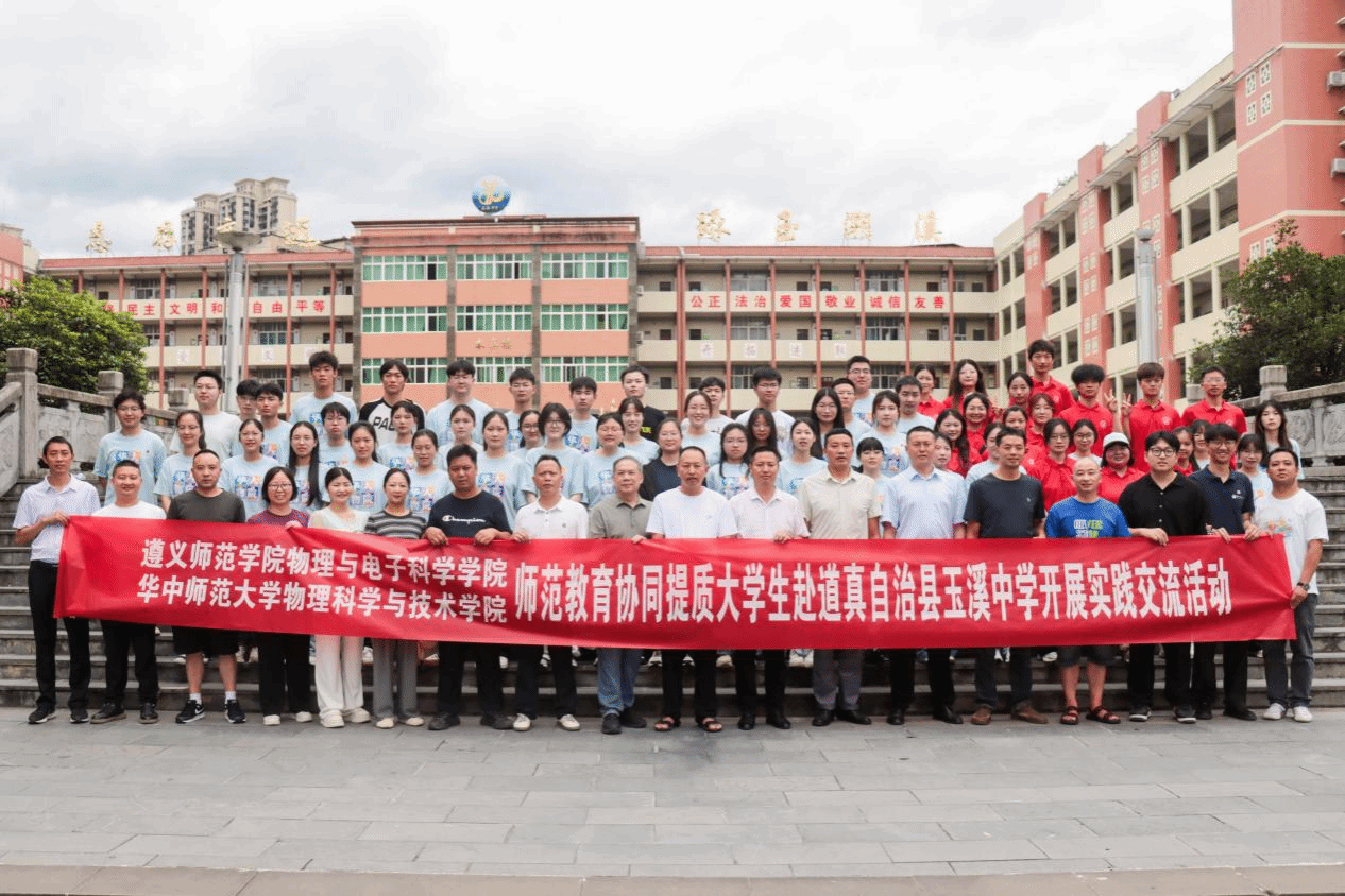 7月1日至7月3日,学院三支实践队携手遵义师范学院物电学院实践队,走进遵义市道真县玉溪中学。围绕“理想信念、科普体验、学业复习”主题开展教学实践,同时进行教育见习与专题调研。7月1日下午,两院师生代表与玉溪中学领导洽谈实践交流合作。7月2日至7月3日,三支实践队深入玉溪中学开展教学实践。我院43名学生均走上讲台,为玉溪中学各班级带来理想信念课堂11节、科普体验课堂14节、学业复习课堂18节。