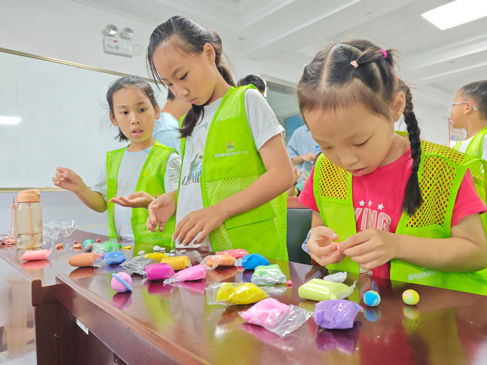 课程最后,实践队成员带领孩子们用橡皮泥亲手制作火箭模型。孩子们充分发挥想象力,认真细致地捏出火箭的形状,并在老师的指导下进行装饰和完善。看着自己亲手制作的火箭模型,孩子们脸上洋溢着自豪和喜悦的笑容。
