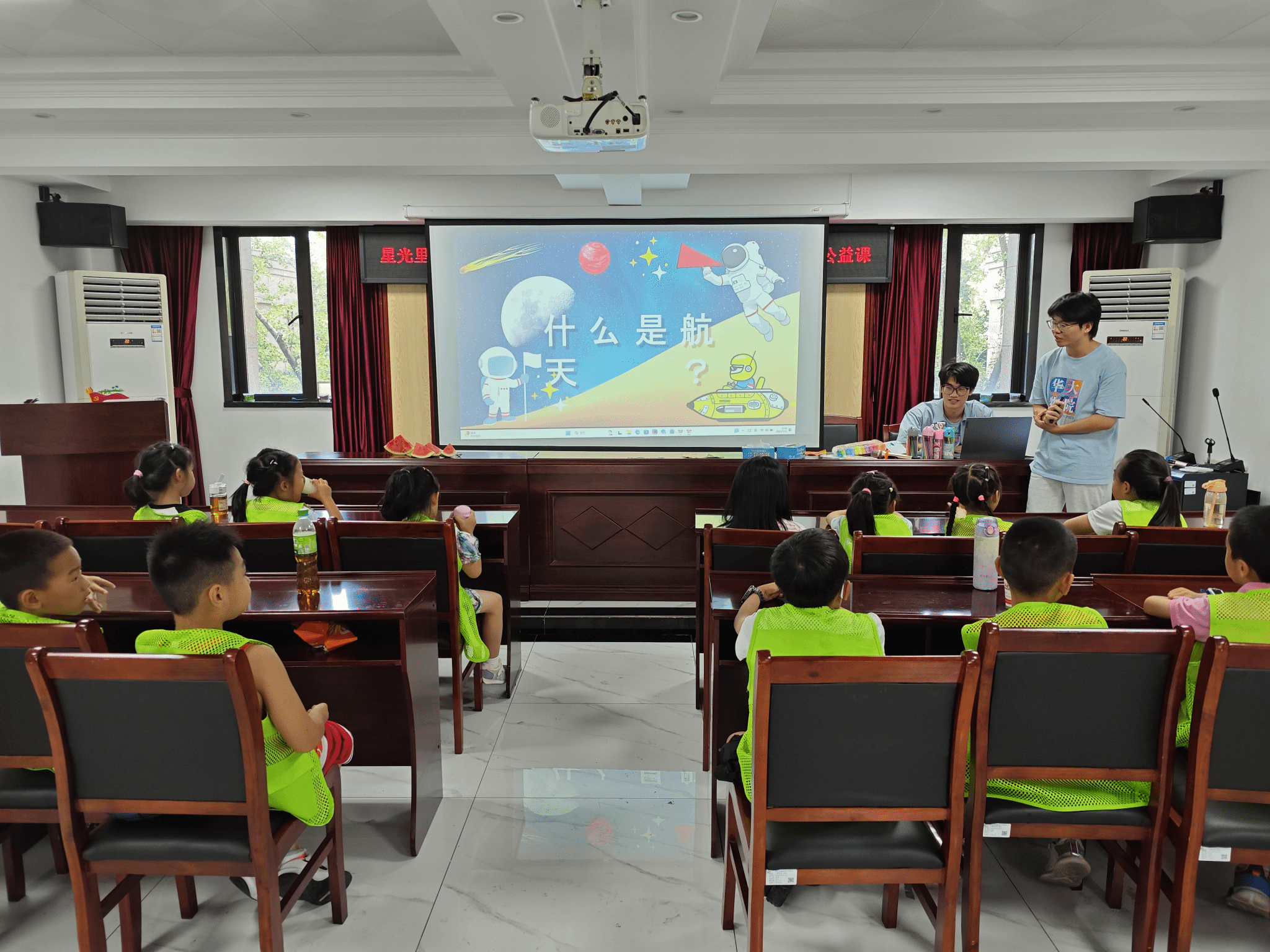 下午的课程以“中国航天奇妙之旅”为主题,实践队成员通过生动有趣的讲解,带领孩子们了解了中国航天事业的发展历程和辉煌成就。从“东方红一号”卫星发射成功,到“神舟”系列载人飞船、“嫦娥”探月工程、“天问”火星探测任务,孩子们听得聚精会神,眼中充满了对宇宙探索的好奇与向往。