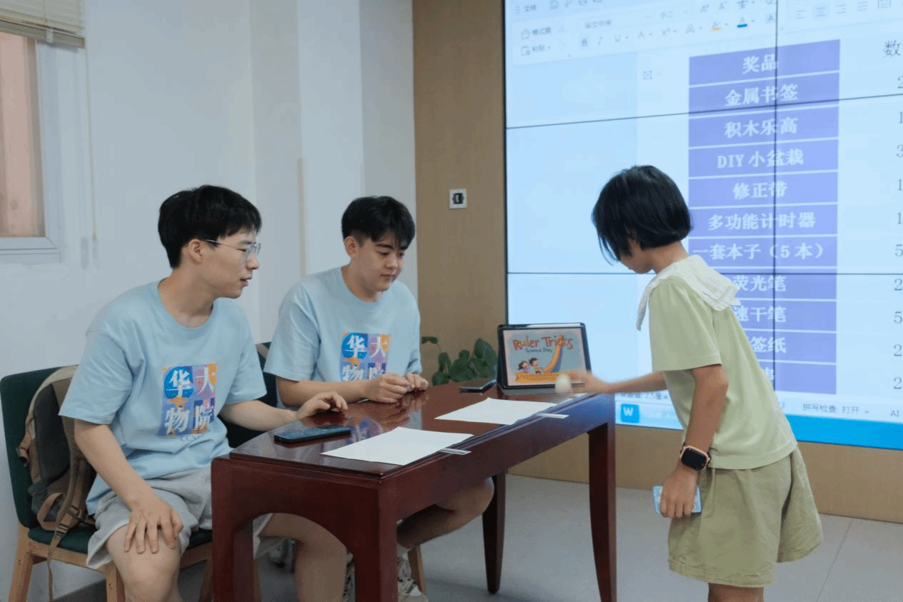 实验结束后,孩子们凭集章卡兑换奖品,笑脸中洋溢着成就与喜悦。最后孩子们与实践队员们合影留念。