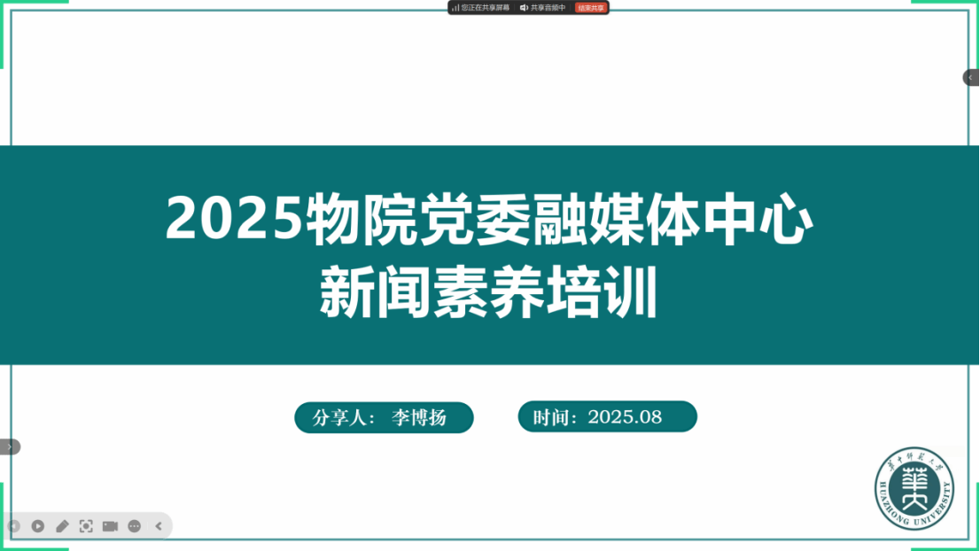 为了进一步发挥二级融媒体试点单位的示范引领作用,增进 2025级新生对学院宣传工作的全方位了解,同时为学院宣传工作队伍储备后续力量,8月16日至18日,学院以线上形式开展了“小 phy 带你进物院”2025年暑期新闻素养培训营。本次培训营于每晚七点至八点半开展,全程参与培训人员共计29人。学院党委融媒体中心及团委宣传中心骨干成员担任课程主讲人,学院宣传干事王棣全程统筹指导。