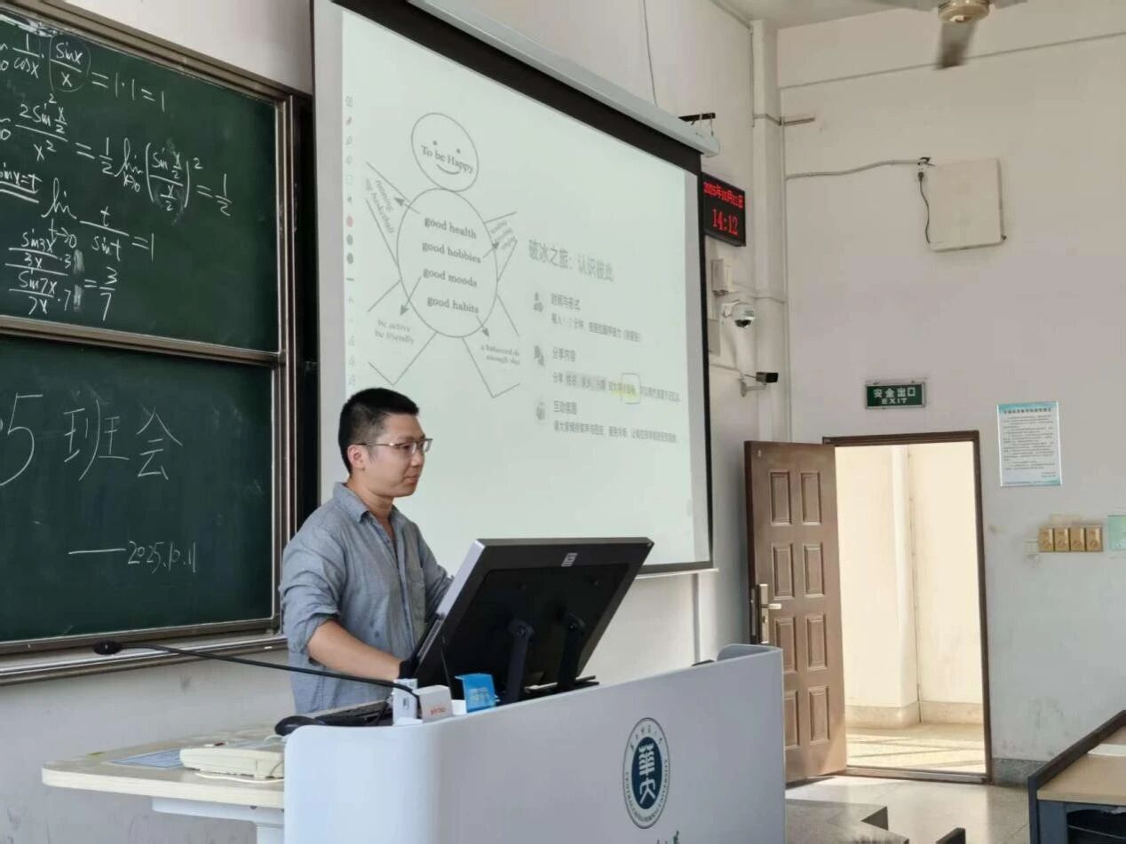 为助力班级同学快速融入新集体、明确成长方向,2025年10月11日下午,2505班以“新起点·共成长”为主题的首次班会顺利开展。班主任何明健老师与全体同学齐聚一堂,班长吴欢同学主持本次班会。