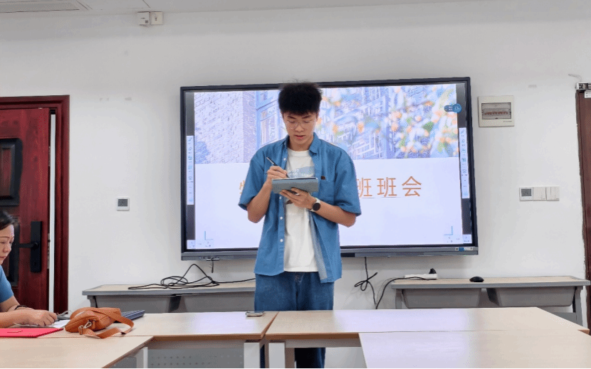 为助力新生快速融入集体、锚定大学成长方向,2025年10月12日,2506班以“青春初遇,共赴未来”为主题的首次班会温馨召开。本次班会由班长杨博凯主持,班主任吴彦文老师与2506班全体新生齐聚一堂,通过“破冰相识—学业引导”两大环节,为大学旅程写下温馨序章。