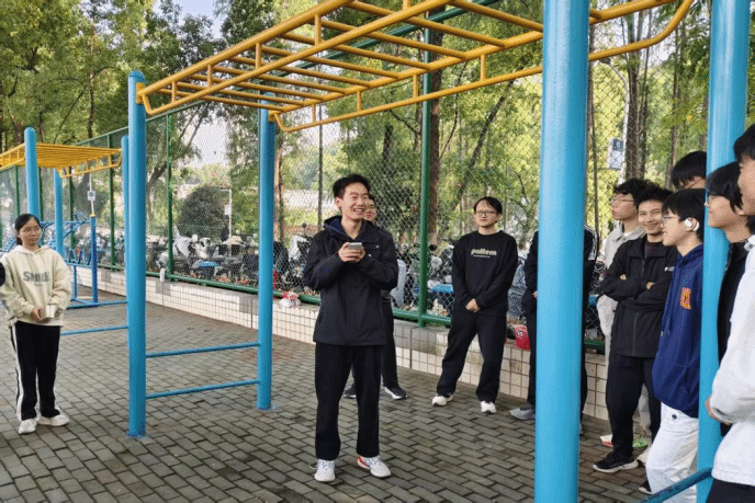 延钰坤首先就活动安全与秩序进行简要说明,并宣布奖励机制。随后,文体委员带领大家进行热身运动,逐一讲解各类器材的使用方法与注意事项,确保活动安全有序开展,也让“健康运动”的理念贯穿始终。