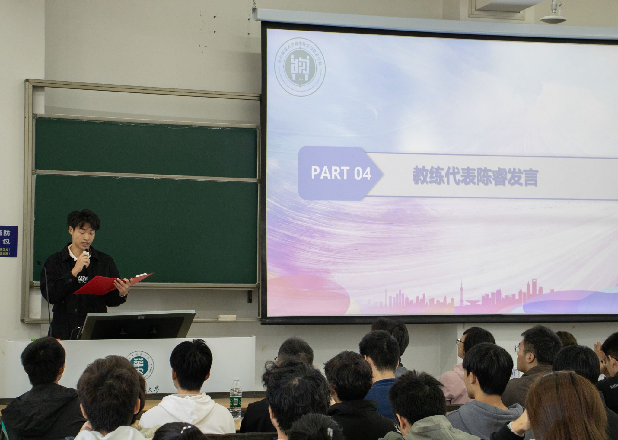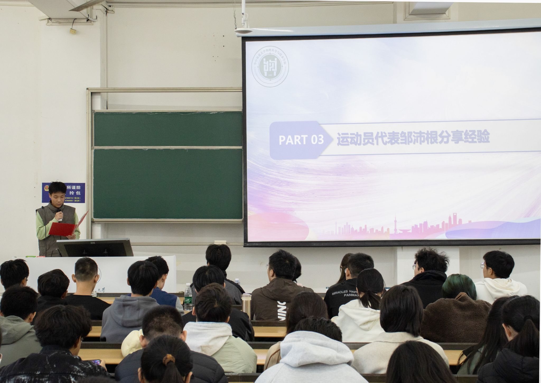 为积极备战即将到来的校运会,激发运动员的拼搏热情,10月23日中午,学院在九号楼9401教室举行了2025年校运会动员大会。学院党委副书记马英、团委书记舒佳欣、团委副书记王润浩,2025级辅导员刘琦与各位运动员共同参与了此次动员会。活动由2025级本科生邹琳璇主持。