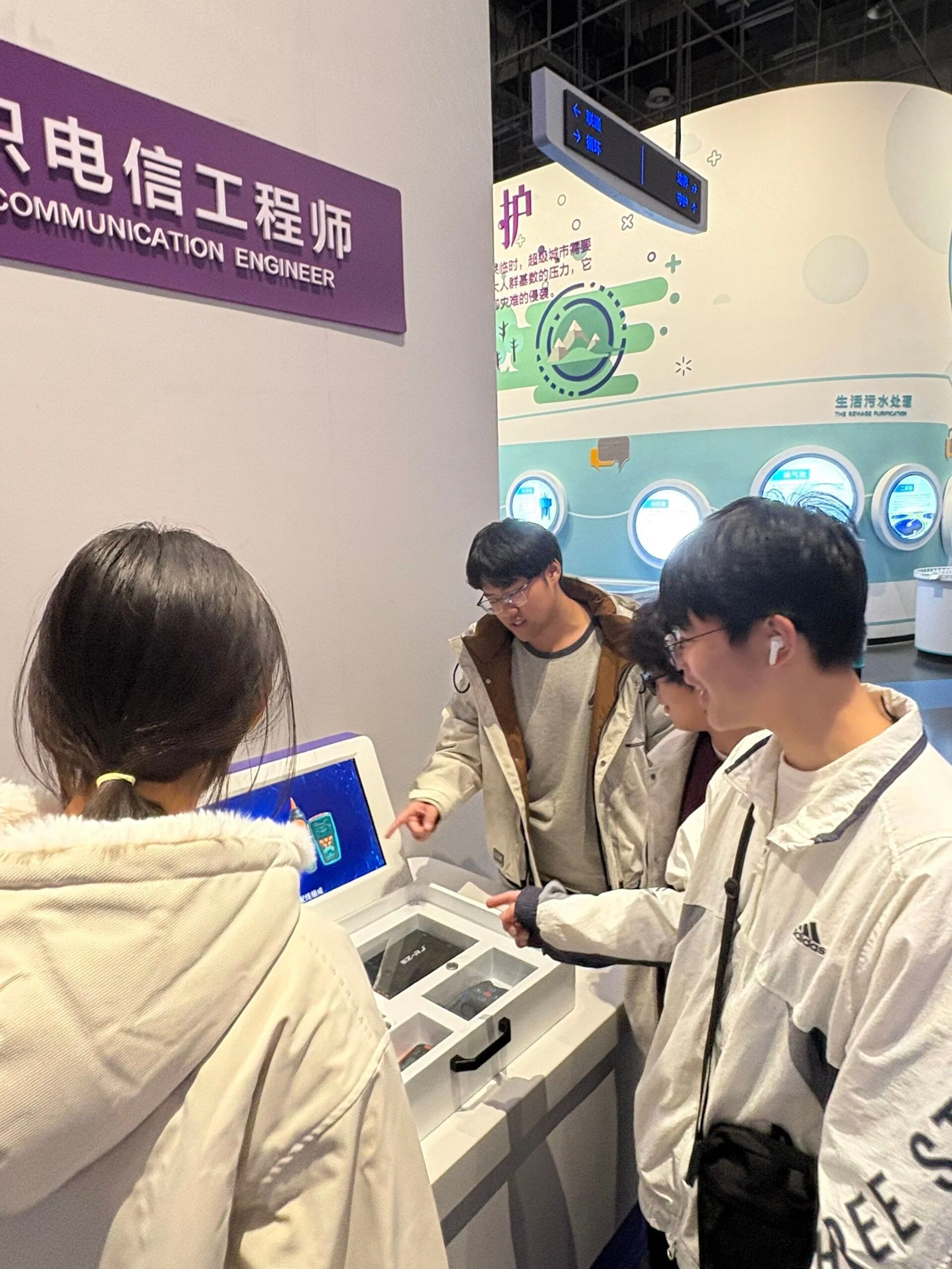 在省科技馆特色展区,两支部的同学们紧扣电子信息类专业核心方向,以“认识电信工程师”主题展区为核心展开沉浸式学习观摩。展区内展示的工程师成长轨迹、技术攻坚典型案例与行业前沿创新成果,让同学们直观领略到电信领域的职业魅力——从通信设备研发到网络系统搭建,从物联网技术落地应用到人工智能深度融合,每一件展品都成为串联专业知识与实际应用的重要纽带。同学们驻足研读工程师的科研笔记,深入交流专业课程与行业需求的衔接要点,在观摩过程中不仅深化了对电信工程师职业使命的理解,更坚定了将专业所学投入国家信息通信事业发展的信念。