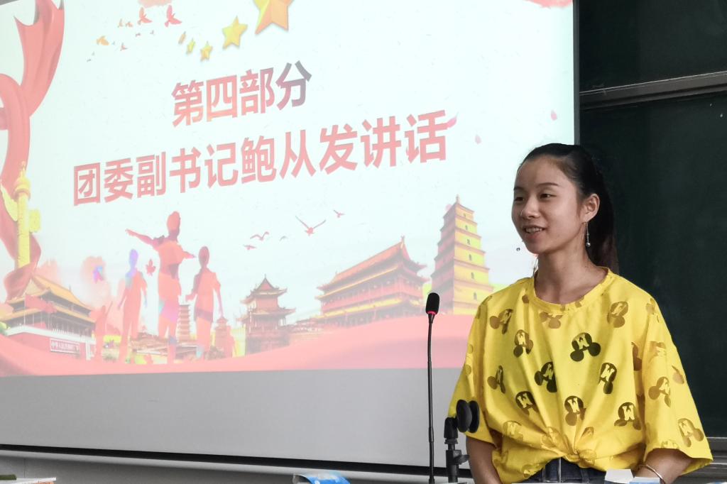 随后,1708 团支书欧阳泳婷对创建百生讲坛活力团支部进行经验分享,她指出,活力团支部的材料准备需要热情以及耐心。"我曾为了准备一个策划案,花了三四天的时间不断修改,中间过程一直在请教一些有经验的同学。"在材料准备上,她强调要学会寻找其内在联系,用“一根线”把不同的资料串联起来;在活动形式上,应思考怎样丰富活动的内容,让活动形式更加多样化;宣传方面也要引起大家的重视,要学会如何“包装”。接下来,李爽对“青春心向党,建功新时代”五月团日活动做了简单介绍。