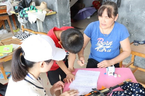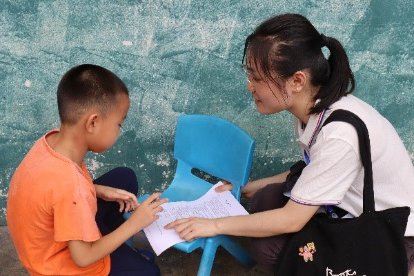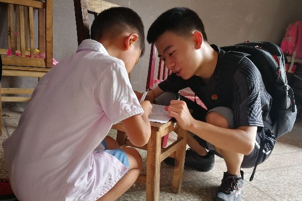 因村广播台设备故障,教学组成员只能挨家挨户走访招生,同时在村内的党员群众服务中心二楼设置报名点,针对村民们提出的如上课时间地点、课程内容等问题做出回答。在谈到夏令营的具体工作时,教学组组长朱殷缘表示,在教学期间,课堂互动、课后交流、课外辅导所占比重相当大。