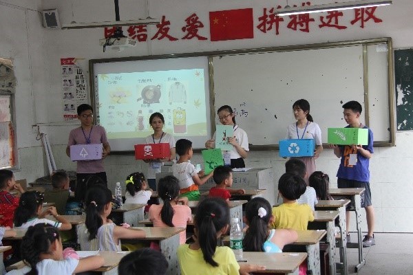物理科学与技术学院讯(通讯员 张宏基)7月18日下午,物理科学与技术学院党员国情学习与实践队队员冯芮在柳山湖镇中心学校给孩子们上了一堂以“垃圾分类”为主题的课程,向孩子们介绍垃圾分类的方法与意义。
