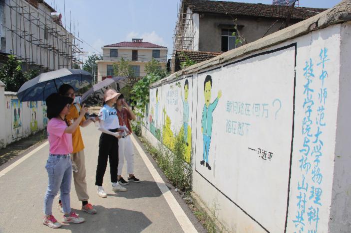 物理科学与技术学院讯(通讯员 张宏基)7月20日,华中师范大学物理科学与技术学院党员国情学习与实践队文化墙组组员在柳山村进行了以“喜迎建国七十周年,共建生态特色乡村”为主题的文化墙的绘制。