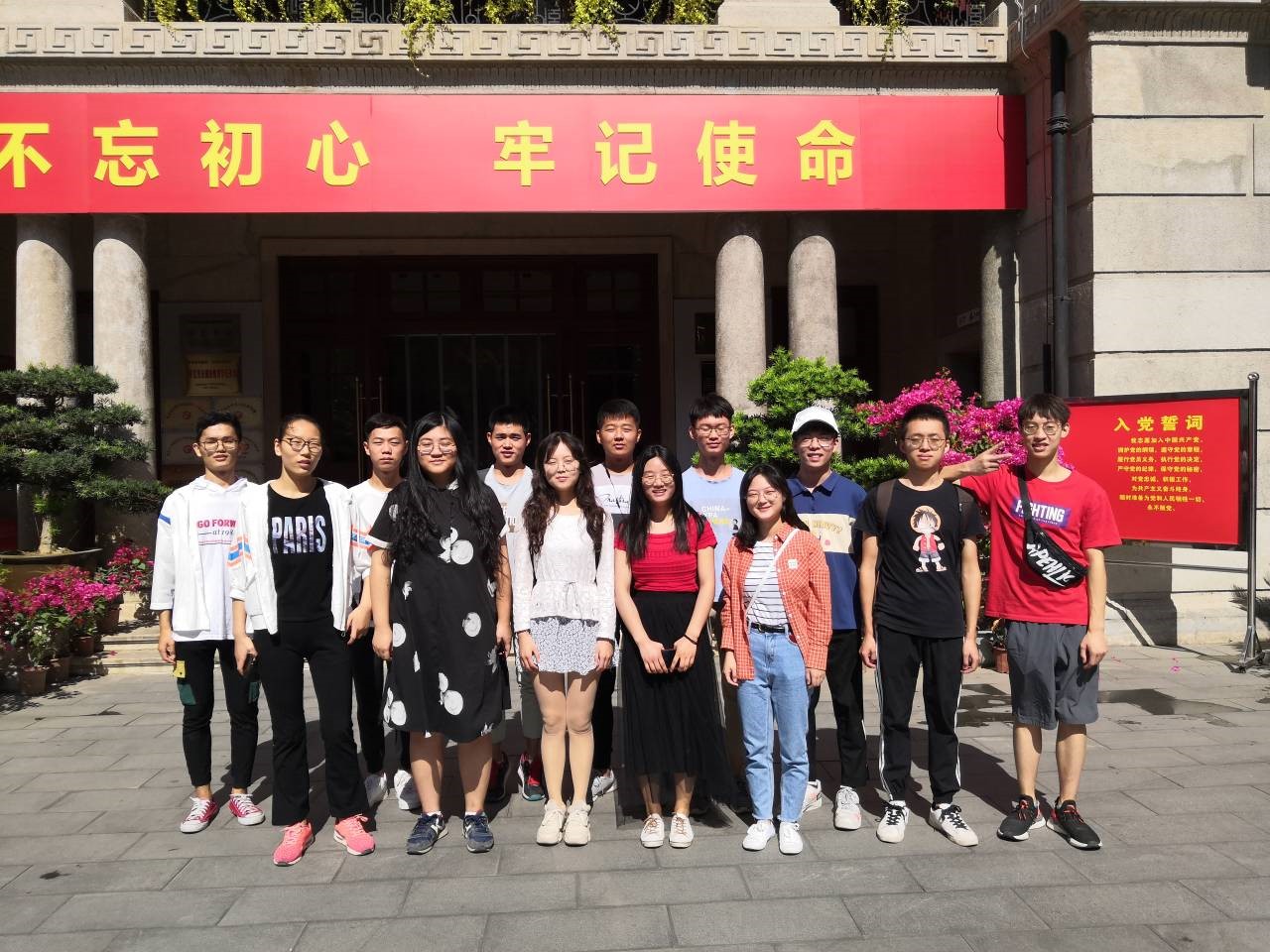 在介绍完本次团日活动背景和流程后,杨恩慧带领同学们共同回顾党的早期革命历程,对以武汉为革命中心的运动进行了详细的介绍。接着团支部来到武汉中共中央旧址纪念馆,在门口的入党誓词宣传栏前,团员们认真学习入党誓词,对革命先辈艰苦奋斗的牺牲精神有了更深刻的理解,启示团员传承先辈的大无畏精神,珍惜以流血牺牲换来的和平昌盛。