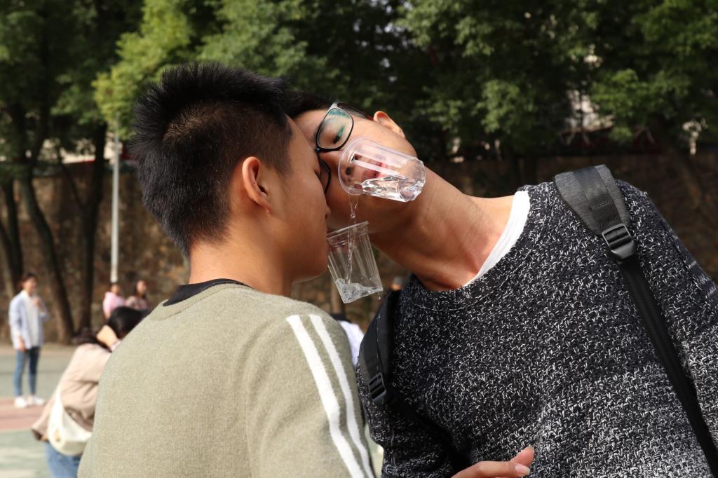 本次拓展活动从“口口相传”开始,小组成员们需在活动中咬紧杯沿,用嘴将水依次传递给下一名成员,直至最后一名成员将水倒入量杯,在规定时间内传递水多的小组获胜。比赛开始后,成员们齐心协力,依次将水顺利地传递给下一名成员,他们都希望能够为本组争得更好的名次。随着活动的进行,竞争愈演愈烈,而每一组成员们之间的默契也越来越好。