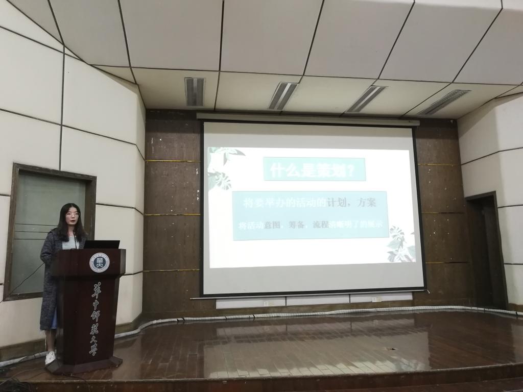 高婉馨表示,策划是对将要举办的活动的计划、方案,是一个活动的航向标。她将策划案分为“封面、目录、概述、介绍、流程、筹备”六个板块并分别进行讲解。高婉馨多次强调写策划是一个严谨的过程,针对策划案不同板块的字体字号、格式提出具体的要求,希望同学们的策划案更加规范化。随着高婉馨的讲解结束,本次培训渐渐接近尾声。
