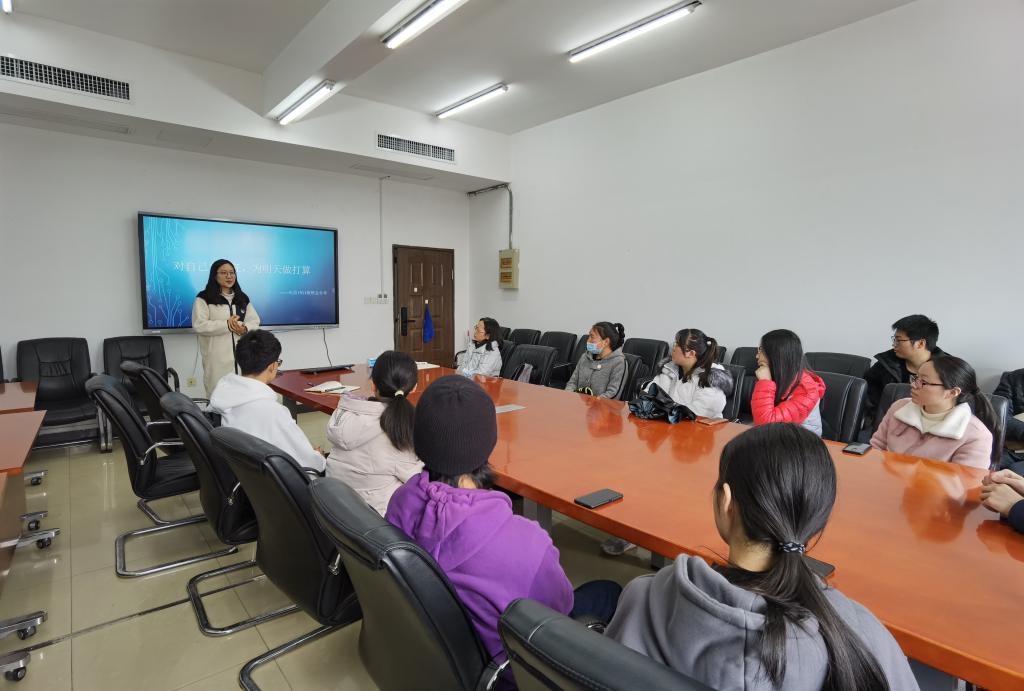 除了同学们的讲述外,活动也邀请了班主任助理王雯婕同学分享自己的考研经历。王雯婕首先谈到了本学期的几门重点专业课的学习方法,告诉同学们不退缩、不畏难,脚踏实地,跟随老师的引导一步一步往前走。同时重点讲述了考研的科目、时间规划等,建议同学们目前学有余力可以多参加学术竞赛,提升自我学术修养,积累自身学术经验,为之后读研、就业武装自己。