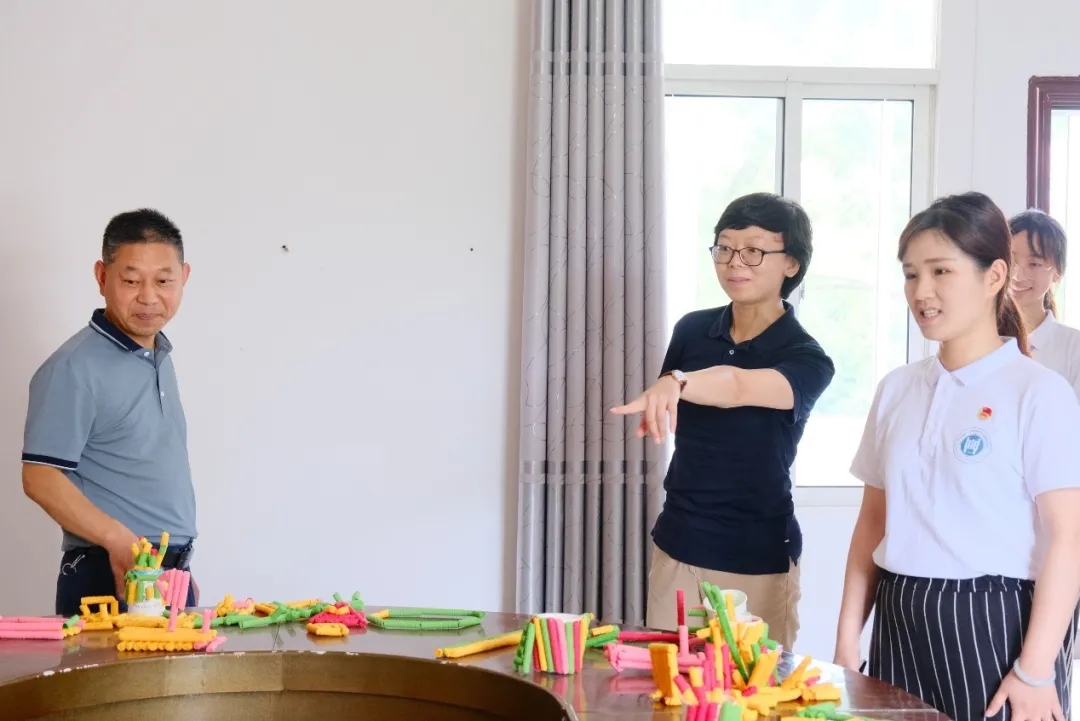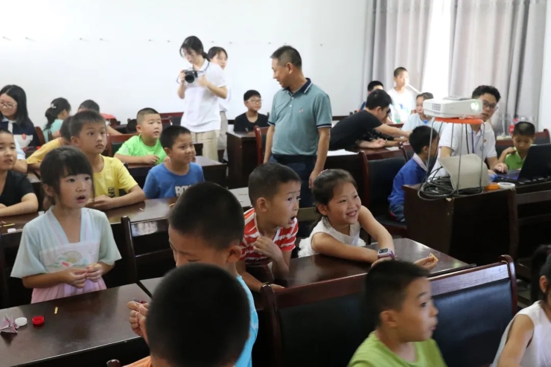 上午10时许,张明生和马英在实践队指导老师高玉茜的陪同下对实践队的教学情况进行了考察。此时,实践队队员张灏正给“希望家园”的40余名孩子上《物质分类》课程,张明生和马英在门外驻足观看。张明生询问了上课学生们的年龄分布和学习情况,鼓励同学们上课认真听讲,希望实践队队员们好好备课,针对村里孩子的兴趣和特点开展形式多样的课堂教学。