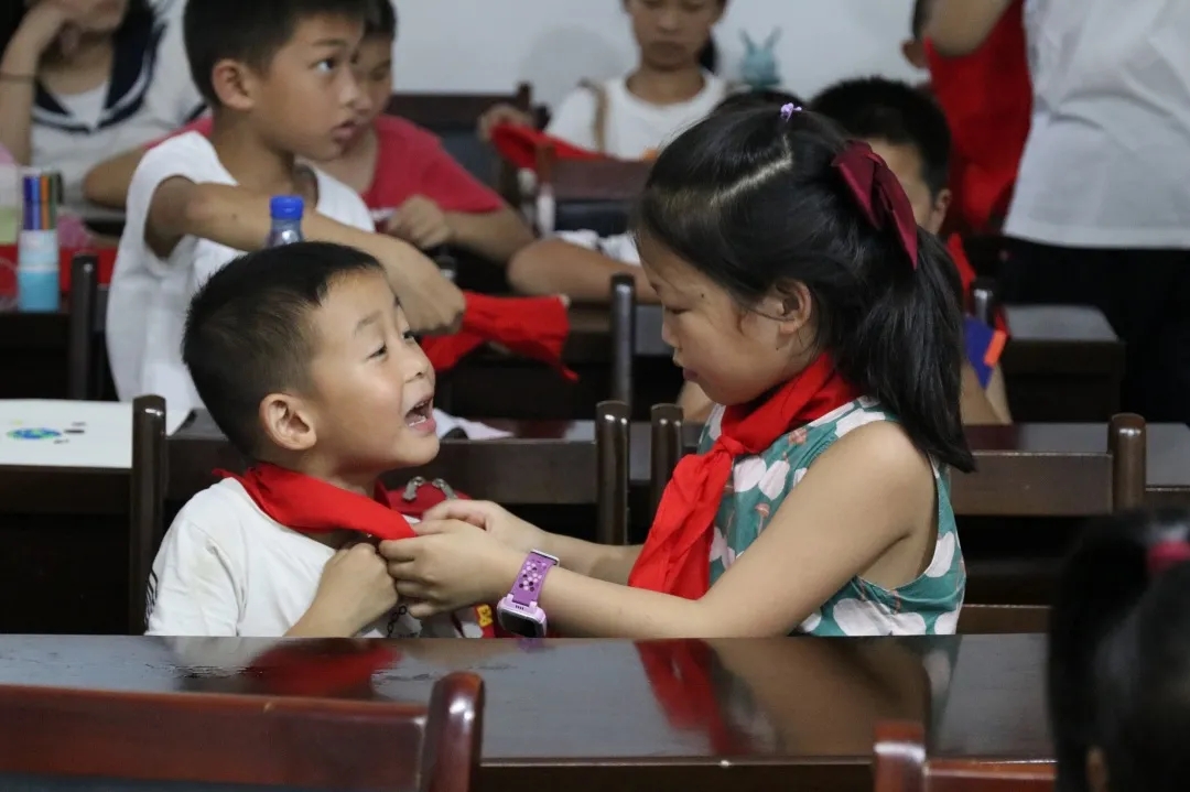 习近平总书记强调,少先队员们要始终听党的话、跟党走,让红领巾更加鲜艳。物理科学与技术学院党员国情学习与实践队通过开展有关课程,帮助夏令营的学生们牢记习近平总书记对少年儿童的殷切寄语,实践队队员希望同学们从小学习做人,从小学习立志,从小学习创造,今天做祖国的好儿童,明天做祖国的建设者。