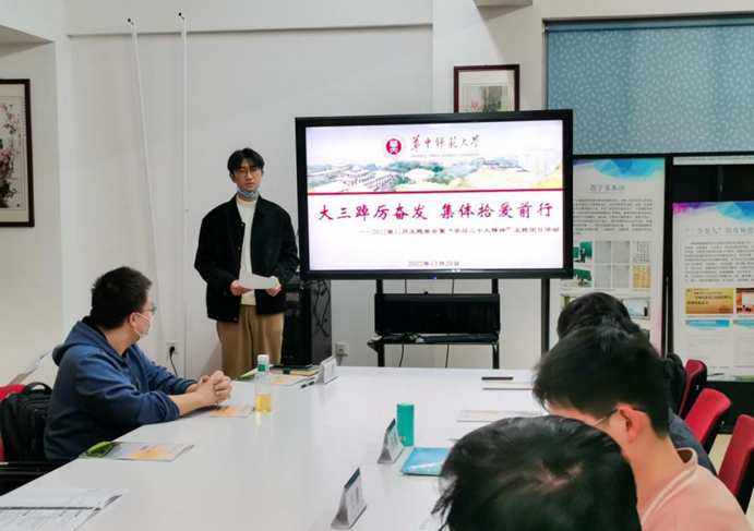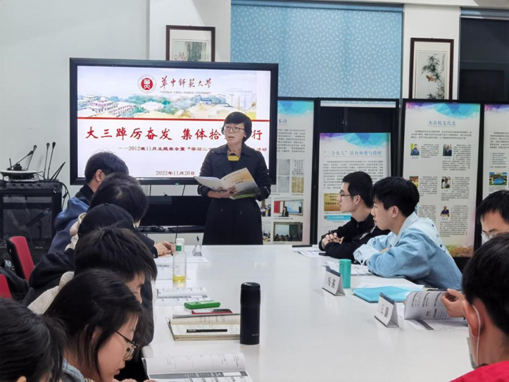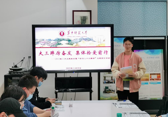 为总结班级和个人阶段性发展成果,进一步指导同学们完善个人简历,科学制定未来规划,擦亮青春奋斗底色,11月20日晚,物理科学与技术学院2012班在9551活动室开展“大三踔厉奋发、集体拾爱前行”主题班会。班会精心策划“学习二十大精神”主题宣讲。辅导员王棣主持活动,学院党委副书记马英、班主任王骥参加并做指导,2012班全体同学与会。