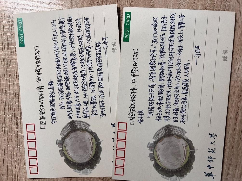 活动结束,同学们把国家安全教育相关内容写在明信片上,向校内的同学们展示明信片,普及传递国家安全知识,将国家安全观的宣传与推广落实到实际行动中,真正做到将国家安全观内化于心,外化于行。