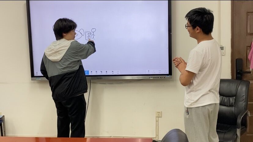 在这一环节,一位同学根据主持人的提示,在白板上绘图表示;另一位同学则依据所画内容进行猜测,回答出对应的事物或词语。