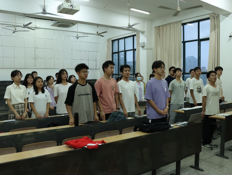 活动开始,全体同学起立奏唱共青团团歌。2104班团支书潘梦明为大家宣讲中国特色社会主义进入新时代后的相关国家政策和城市面貌,以东莞为例以小见大,让同学们直观感受到国家进入新时代后的巨大变化,并从中了解国家为完成脱贫攻坚,实现全面建成小康社会所做出的不懈努力。潘梦明总结了党的二十大报告中所指出的三件大事,并鼓励同学们坚定历史自信,把握历史规律,掌握历史主动,阔步新征程。