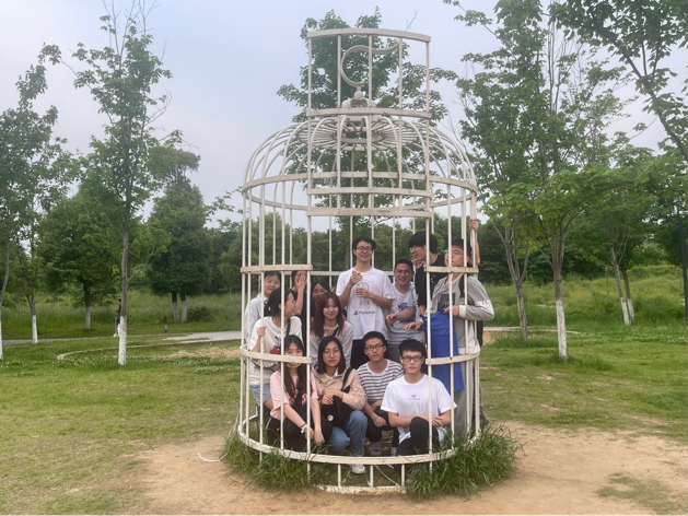 班会特别设计了课外实践活动,让同学们在校外优美的风景中舒展身心。