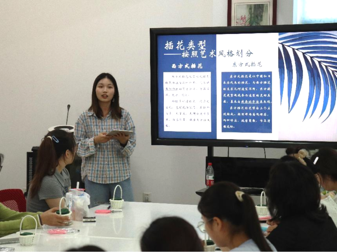 活动分为“让烦心事现身、插花制作、心愿卡片许未来”三个环节。来自华中农业大学的专业指导老师刘芸为同学们介绍了现代花艺的有关专业知识,包括丰富多样的插花素材、新奇的插制技巧和花篮的制作等。