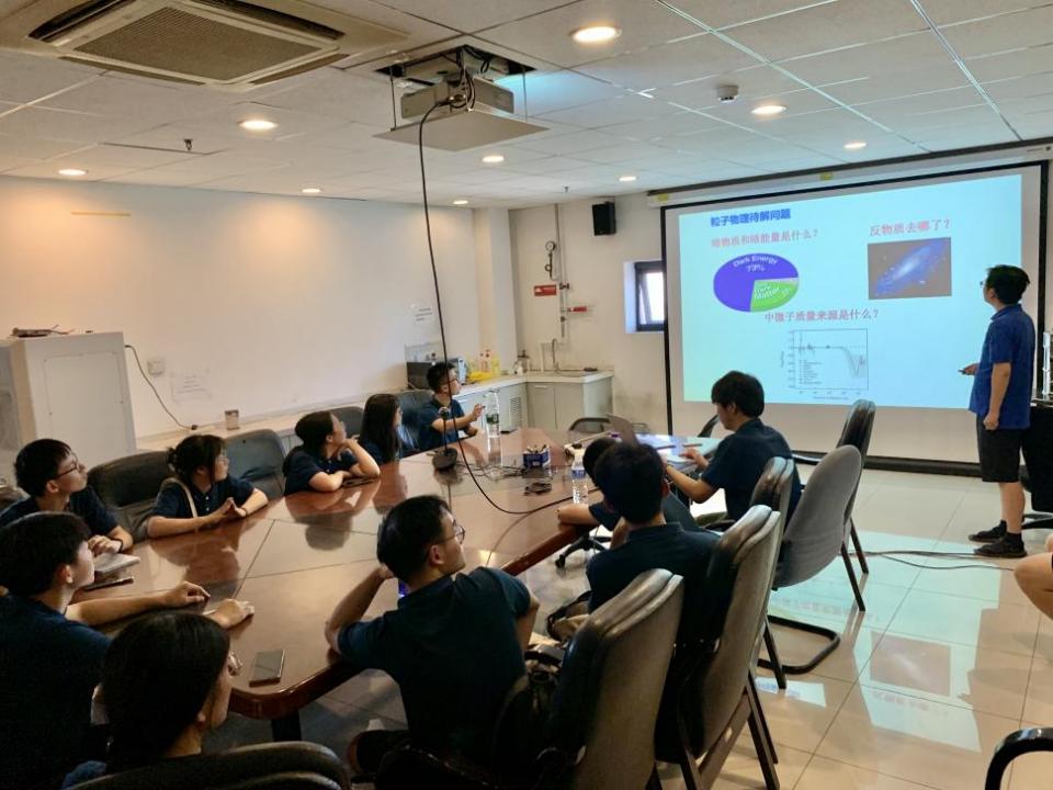 张艳席老师以“LHCb实验与味物理”为主题作报告。张艳席引导队员们思考粒子物理学探究的两个问题——组成世界的最基本粒子是什么,以及基本粒子之间的相互作用是什么。之后,张艳席介绍了原子模型的建立历史和粒子物理的研究思路,讲解了夸克模型理论和大型强子对撞机(LHC)的概况。张艳席还为队员们科普了CP对称破缺理论及相关实验成果。