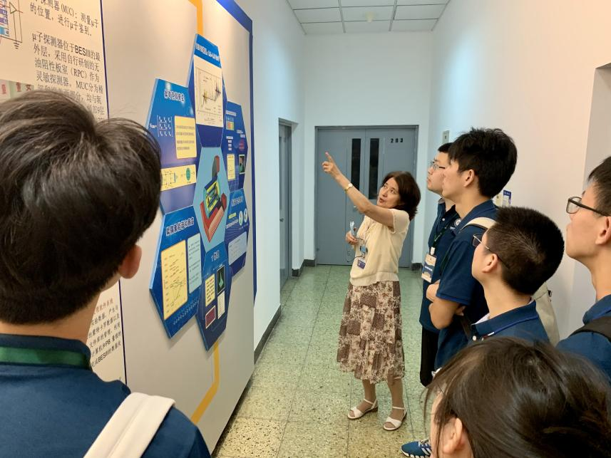 7月15日,实践队参观了北京正负电子对撞机。高能所的麦迪娜研究员借助沙盘模型向队员们介绍了北京正负电子对撞机的工作原理和发展历史,通过展板照片和相关科学报刊向队员们展示国家对高能物理研究所的重视以及高能物理研究所近些年取得的科学成果。