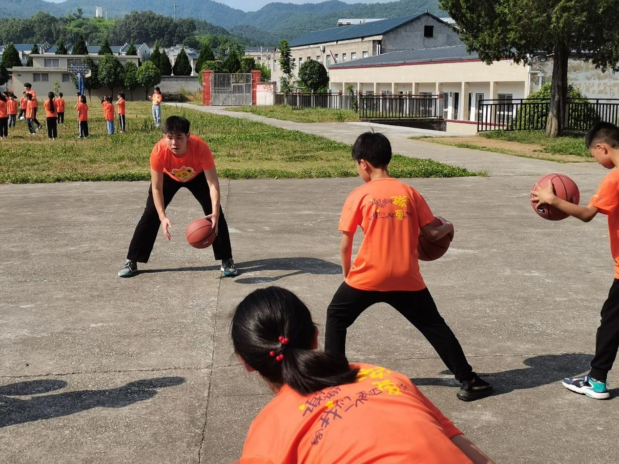 手腕反转,灵活运球。支教队员刘一帆老师教授篮球课——熟悉篮球,增强球感。体育锻炼千万条,安全问题第一条。篮球课开始后,为防止学生运动时出现肌肉拉伤等意外情况,刘一帆带着学生们做了热身运动,活动了脚腕、手腕、腰部与头部等关节与部位。