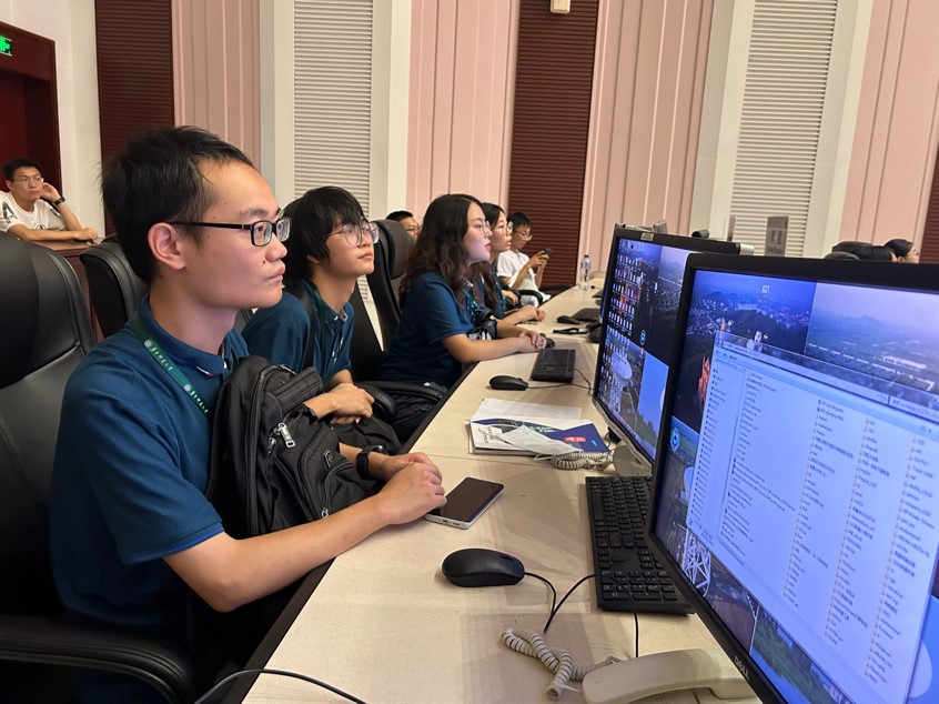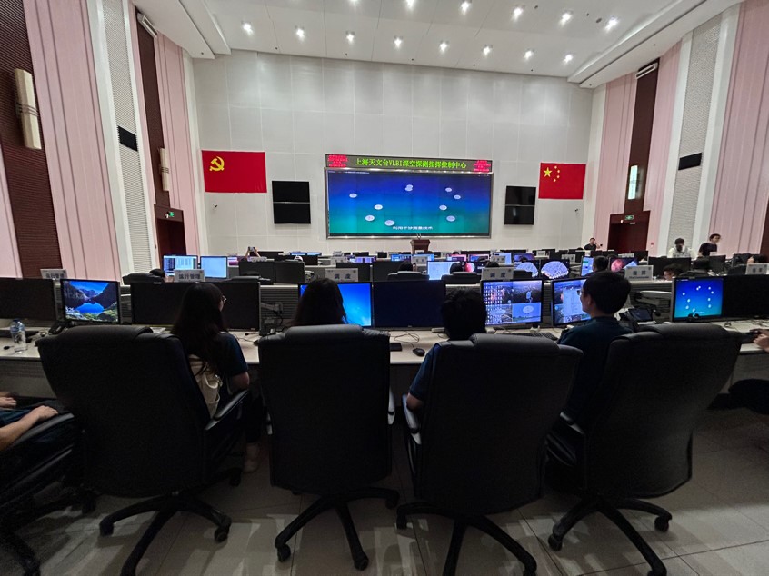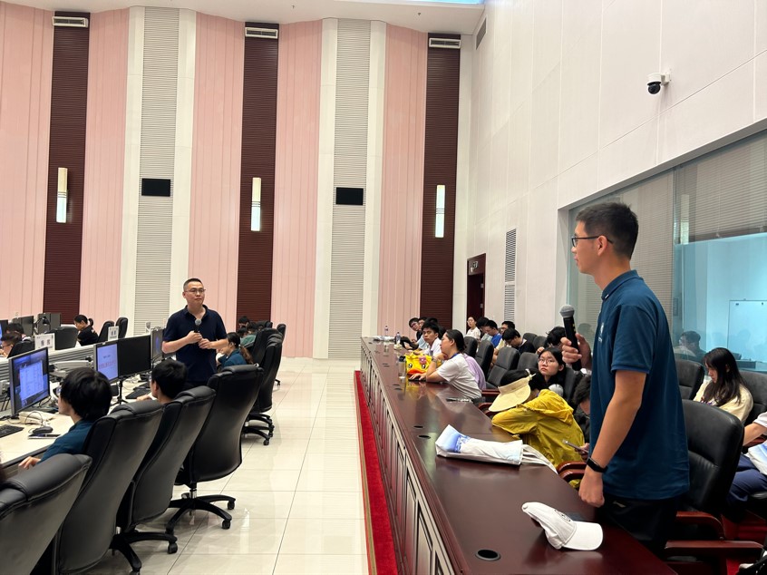 7月14日上午,实践队受到上海天文台马金老师的热情接待,来到上海天文台VLBI(甚长基线干涉测量)深空探测指挥控制中心。马茂莉老师在测控中心进行了VLBI任务的报告。她介绍了VLBI技术在嫦娥工程、火星探测、子网规划以及行星星际空间探测的应用,并分享了上海天文台在相关任务所获得的荣誉。上海天文台高级工程师赵融冰老师作《天马望远镜及其应用》报告,他讲解了天马望远镜的研发、原理、应用和发展,从工程角度为队员们介绍了天马望远镜。