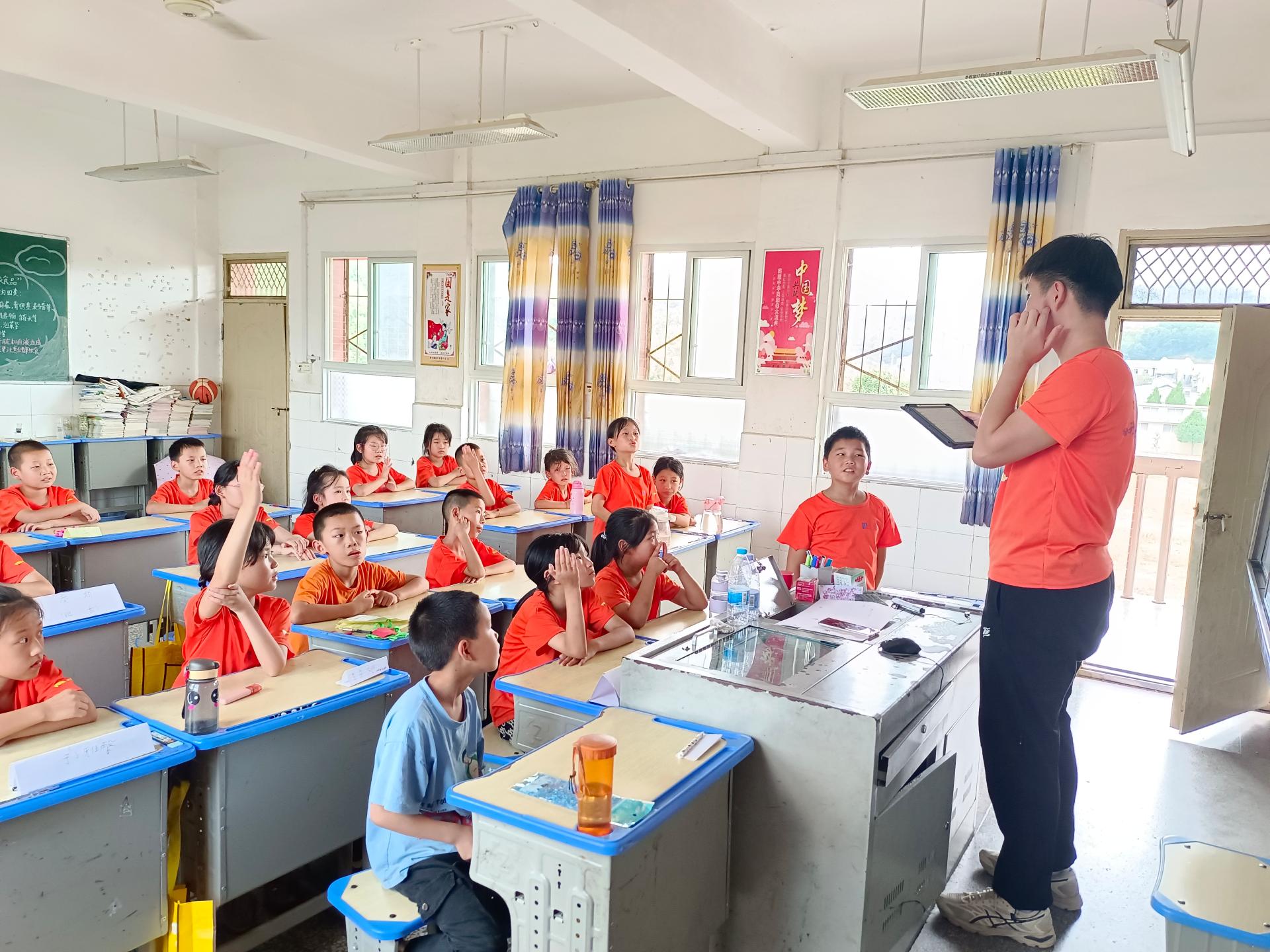 体操汇演,团结一心争一流。为促进学生身体健康,培养学生组织纪律性、运动节奏感,辰星支教队首先组织了全年级体操汇演。由辰星公益协会筑梦暑期支教活动指导老师严瑞雪,支教队长姜旭蕾,队副朱启文以及队员吴振翮与刘一帆等人担任评委,各评委依据体操比赛评分表,从入场退场的组织纪律、做操质量、出勤率及服装统一度四个方面,进行公正客观的评分,根据评分结果颁发“最佳组织奖”“最佳参与奖”。三四年级凭借较高的动作准确率、和谐有力的节奏感、干脆利落的动作、朝气蓬勃的精神面貌,以90的高分荣获桂冠。