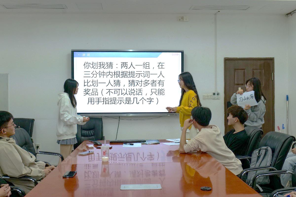 班会以听取呱声一片、心有灵犀、看谁最能吃以及你划我猜四个小游戏作结。同学们从局促尴尬到开怀大笑。