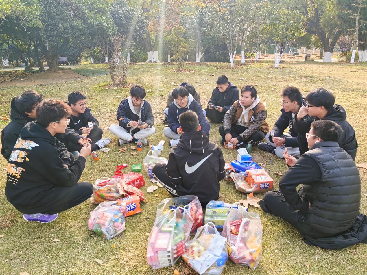 初冬的暖阳与同学们的笑颜相映成辉,徐徐的微风携着同学们的欢笑远去。在团支书的带领下,狼人杀、真心话大冒险等趣味游戏火热进行。