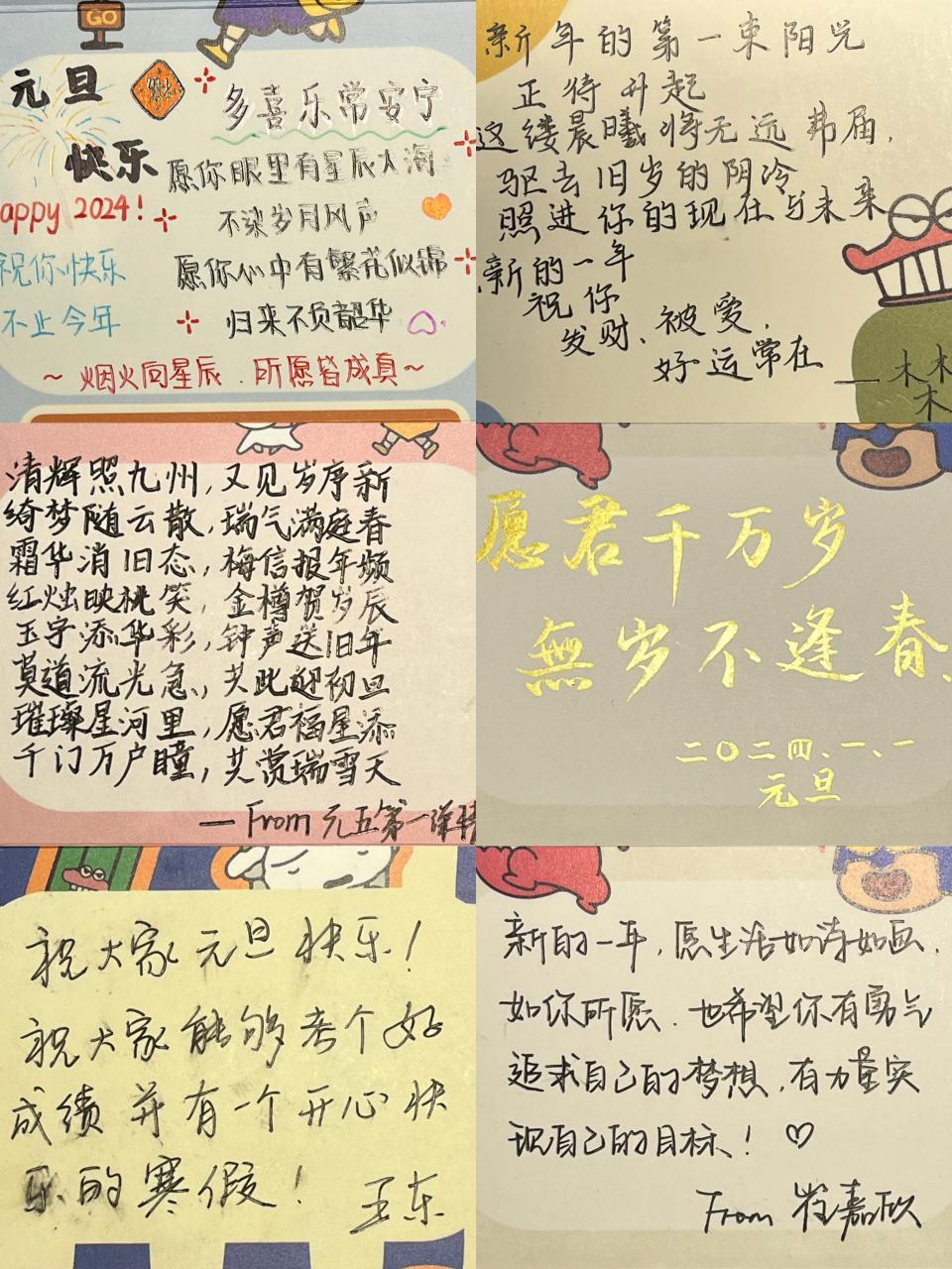 每位同学在贺卡中写下真挚祝福和甜蜜话语,再将贺卡随机分配给其他同学。一张张贺卡承载着大家的美好祝愿与暖心叮咛,传递着彼此之间的爱和温暖。小贺卡里装满大祝福,同学们心和心的距离更靠近,也建立起一段难能可贵的情谊。衷心希望同学们的心愿,都会遵循着你走着的踪迹,延展到另一条更广阔的路上。
