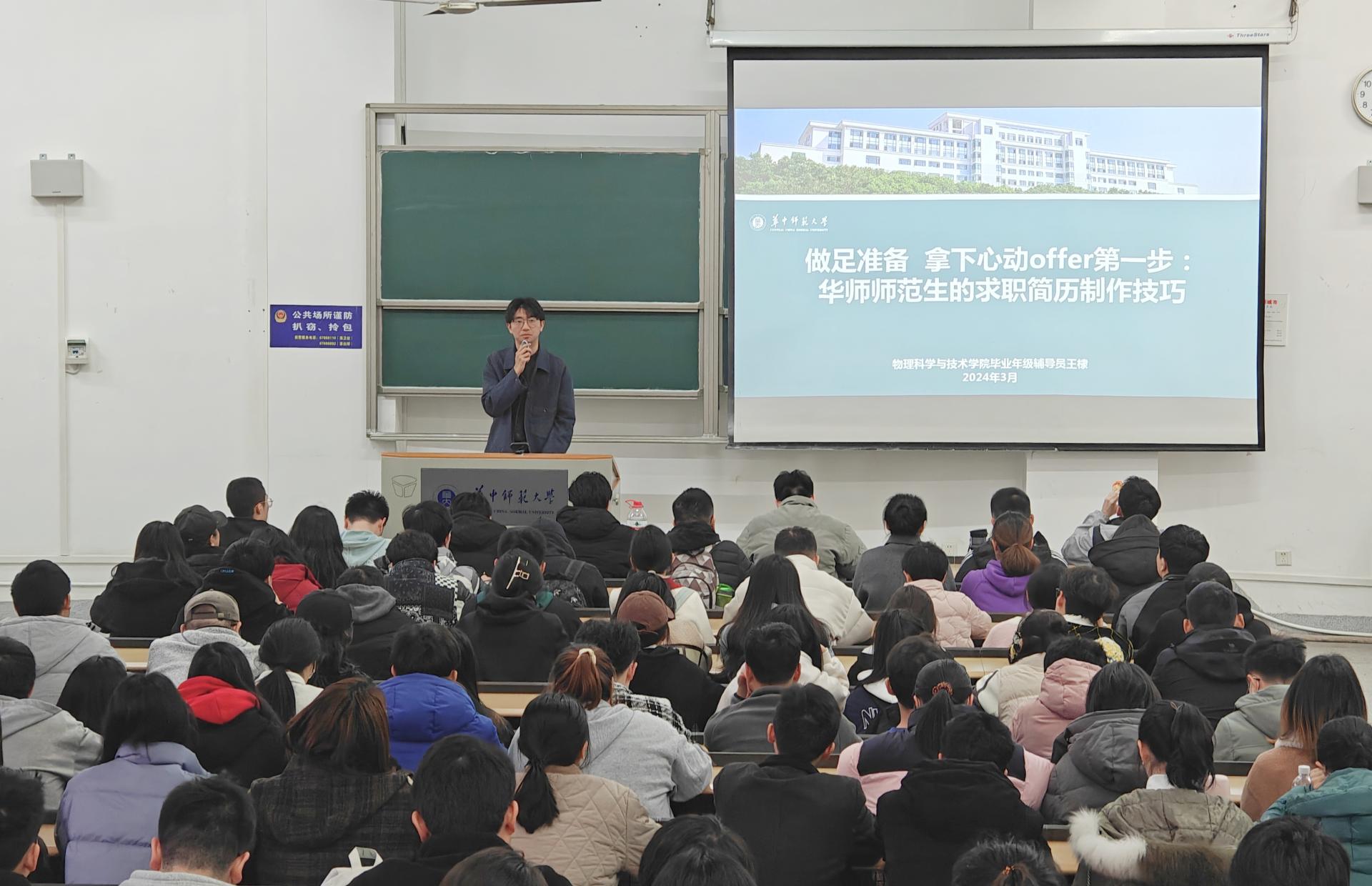 王棣以“做足准备 拿下心动offer第一步:华师师范生的求职简历制作技巧”为题开展指导。他首先介绍了高质量简历对于师范生求职的重要性,引导同学们从自我能力澄清、目标岗位分析、做好人岗匹配、搭建逻辑框架、增强语言表现力五个方面着手制作简历。王棣强调要明确求职意向,他以2020级优秀简历为案例,逐一展示了优秀简历的具体板块和具体内容,归纳出具有华师师范生特色的简历形式。