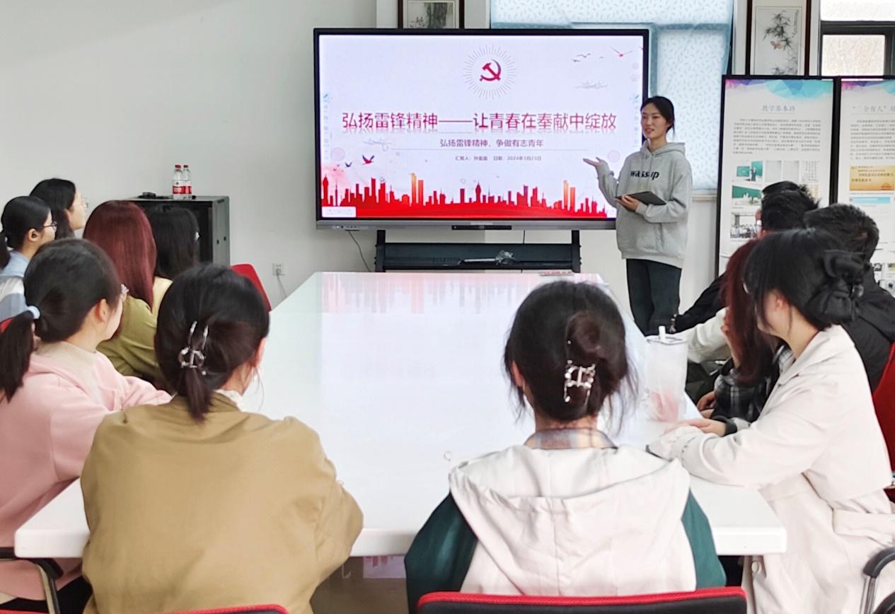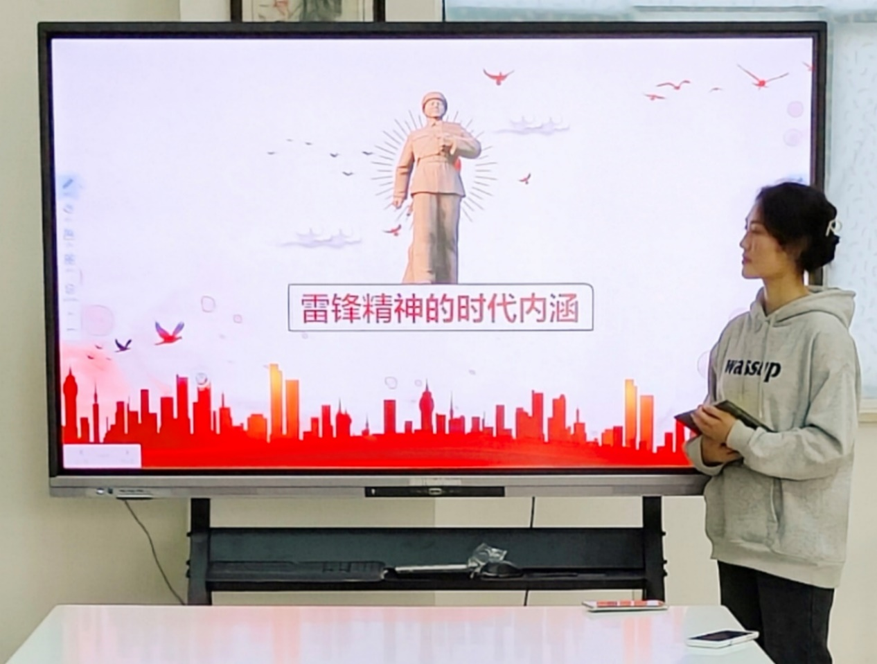 活动第一项,由孙盈盈带领全体支部成员了解雷锋生平,学习雷锋精神。 “大爱的胸怀”与“忘我的精神”是他抛却个人得失,默默付出、无私奉献的生动写照; “信念的能量”与“进取的锐气”是他追寻理想信念,积极进取、永不言弃的不竭动力。