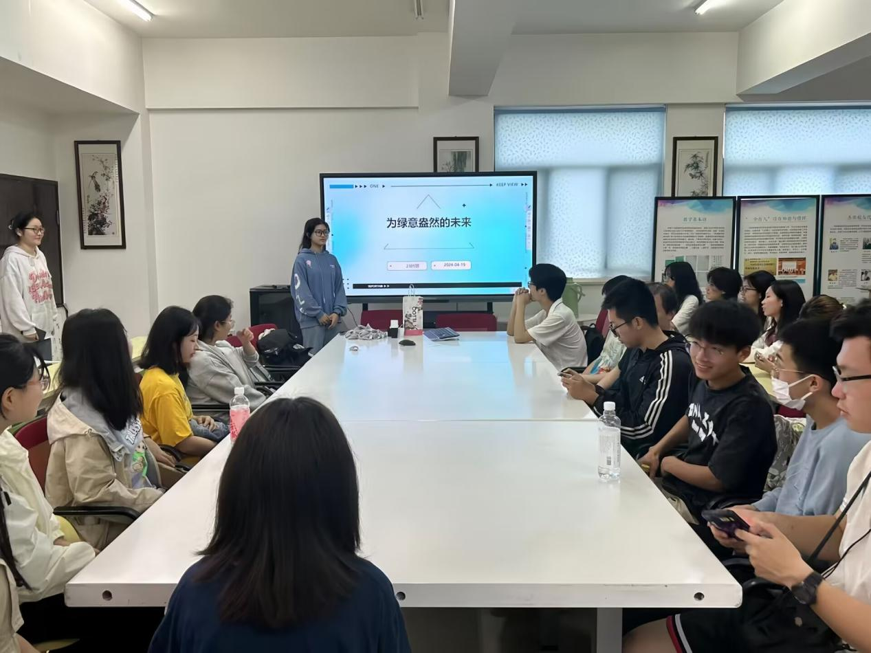 班会始伊,班长姜米为大家讲解环保知识,随后为大家介绍本次班会的主要活动,从精彩的环保知识竞答到寓教于乐的咖啡渣种植计划,每一项活动都紧紧围绕“为绿意盎然的未来”的主题展开,引导同学们实践环保行动,加深对环境保护的理解。