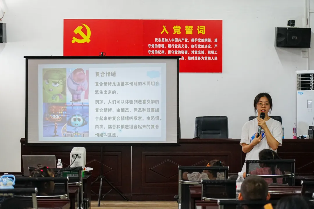 实践队队员吴晨瑜就情绪展开授课,以极为易懂的方式向孩子们介绍了“喜怒哀惧”四种基本情绪,以及四种基本情绪互相组合形成的复合情绪,正如影片中乐乐所说:“我明白新情绪在一开始总会被视为无用处的,但我学到每种情绪都是好的。”