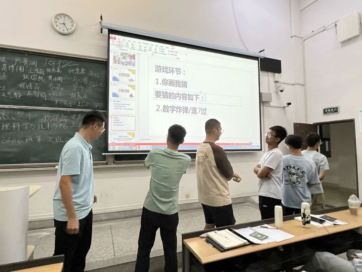 最后,为使同学们尽快相互认识与了解,班级组织了轻松有趣的破冰活动。每一位同学先将姓名一笔一划写在黑板上,再进行个性化的自我介绍。在“你划我猜”和“数字炸弹”的小游戏中,同学们默契配合。教室中氛围融洽、欢笑连连。