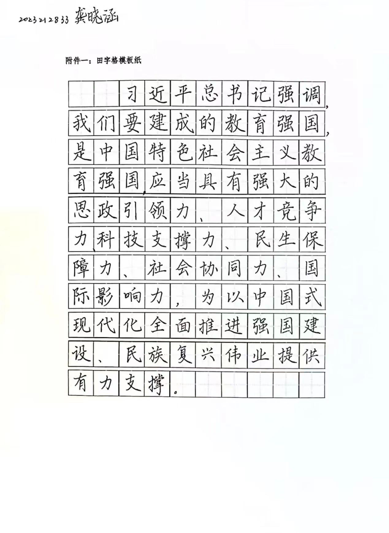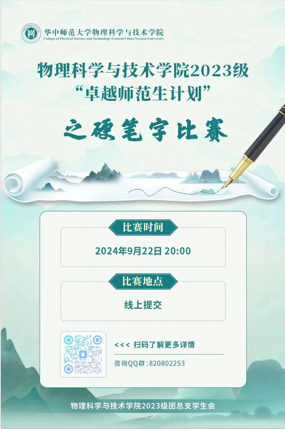 为提升师范生的专业知识与技能,强化核心能力素养,通过竞赛形式激励同学们加强师范技能训练,9月22日晚,学院2023级本科生举办“卓越师范生计划(一)”之硬笔字书法比赛。